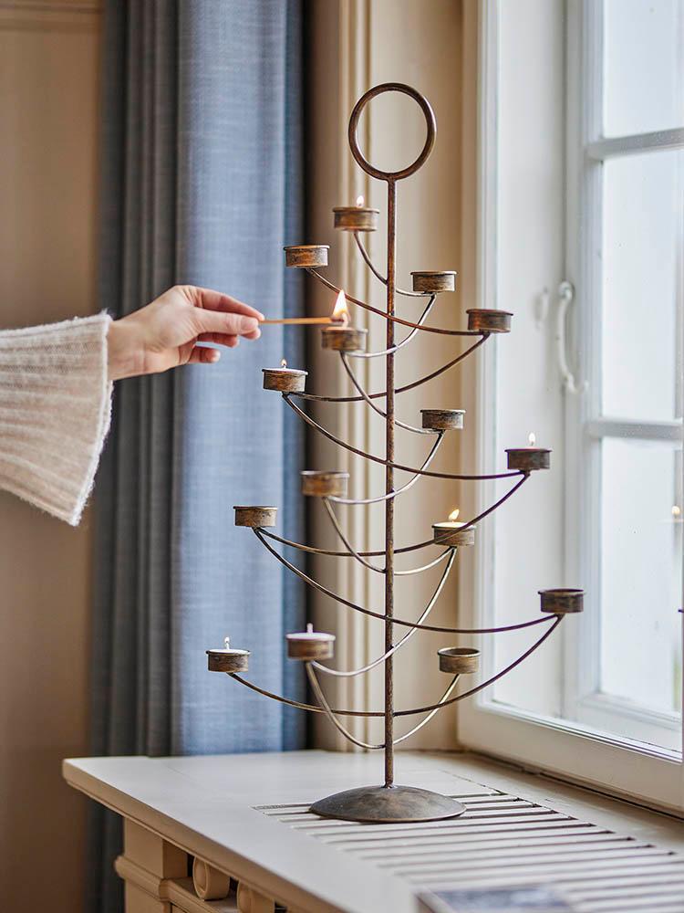 Skulpturelle lysestager og det bløde skær fra stearinlys skaber et roligt og indbydende lys, der tilfører varme og stemning i hjemmet gennem hele julen.