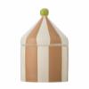 Das Cimmi Gefäß mit Deckel von Bloomingville MINI ist ein dekoratives Gefäß in gedeckten blauen und beigen Nuancen mit einem zirkusinspirierten Design. Die handbemalten Details verleihen ihm einen verspielten und fein ausgearbeiteten Ausdruck, geprägt von nordischer Ästhetik. Es kann sowohl zur Aufbewahrung als auch als dekoratives Element im Zuhause genutzt werden. Farbintensitätsunterschiede können auftreten, wodurch jedes Stück einzigartig ist.