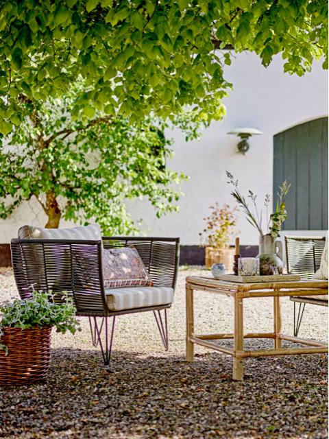 Machen Sie die Terrasse und den Garten mit Gartenmöbeln aus Bambus, Körben aus Naturgeflecht und wunderschönen Laternen im stilvollen nordischen Design von Bloomingville zu einem Teil des Wohnbereichs.