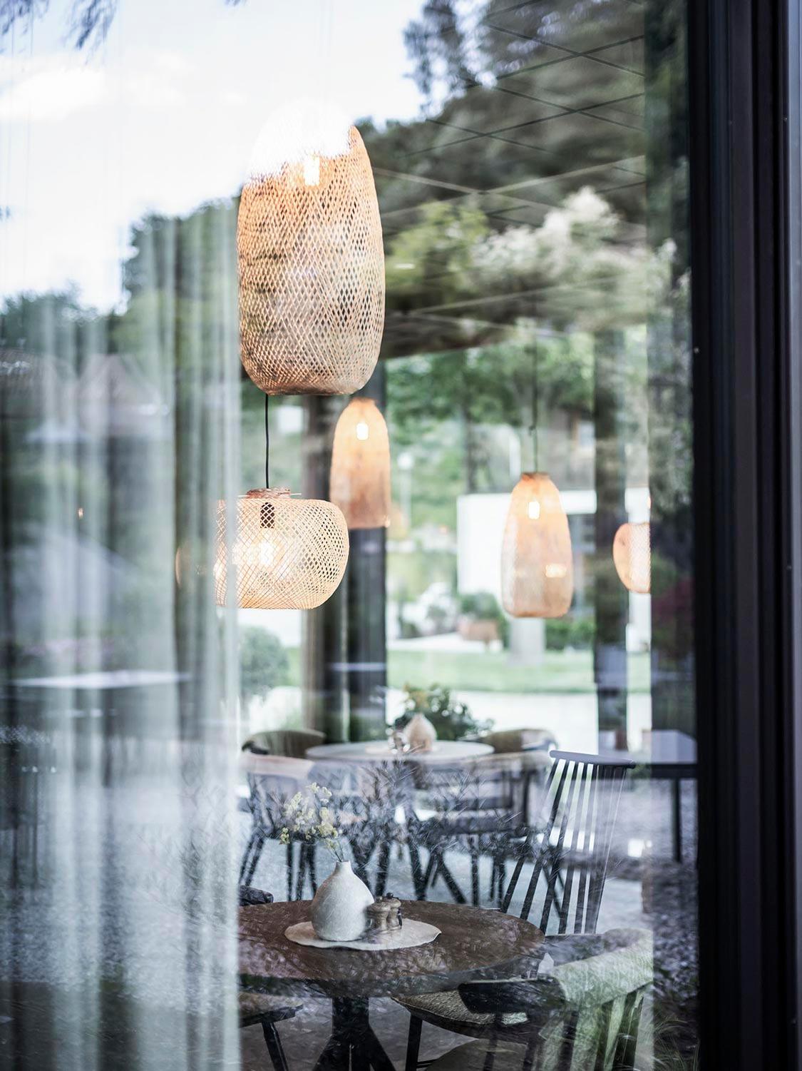 'Lampen bilden in jeder Einrichtung das i-Tüpfelchen. Die Glaslampen, die der Stylist für dieses Projekt ausgewählt hat, wirken diskret und elegant in der Einrichtung, während sie gleichzeitig für eine angenehme Beleuchtung für die Restaurantgäste sorgen.'
