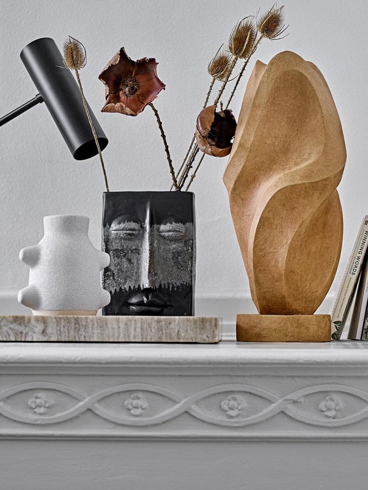 Personal, meaningful, and decorative items gathered in cozy still lifes give us a homely feeling and inspire us to always choose interiors that mean something to us. Artistic objects in different materials like marble, cast iron, and ceramics are must-haves in creating a personal style. For us, small art pieces are essential in the living room. We love designs that tell a story.