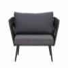 The Pavone Sofa by Bloomingville is designed with a nordic look and beautiful details. It is made of powder-coated black metal with a black polyester rope hand-woven onto the frame. The dark grey cushion covers are made of polyester and can be washed at 30 degrees. The garden sofa is suitable for all outdoor areas, but by protecting the sofa from direct sunlight, the color of the fabric and the durability of the sofa will be extended. Enjoy a beautiful outdoor sofa with high comfort, including cushions produced in compliance with UK fire retardant regulations (FR).